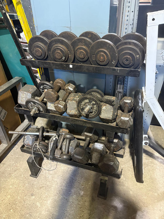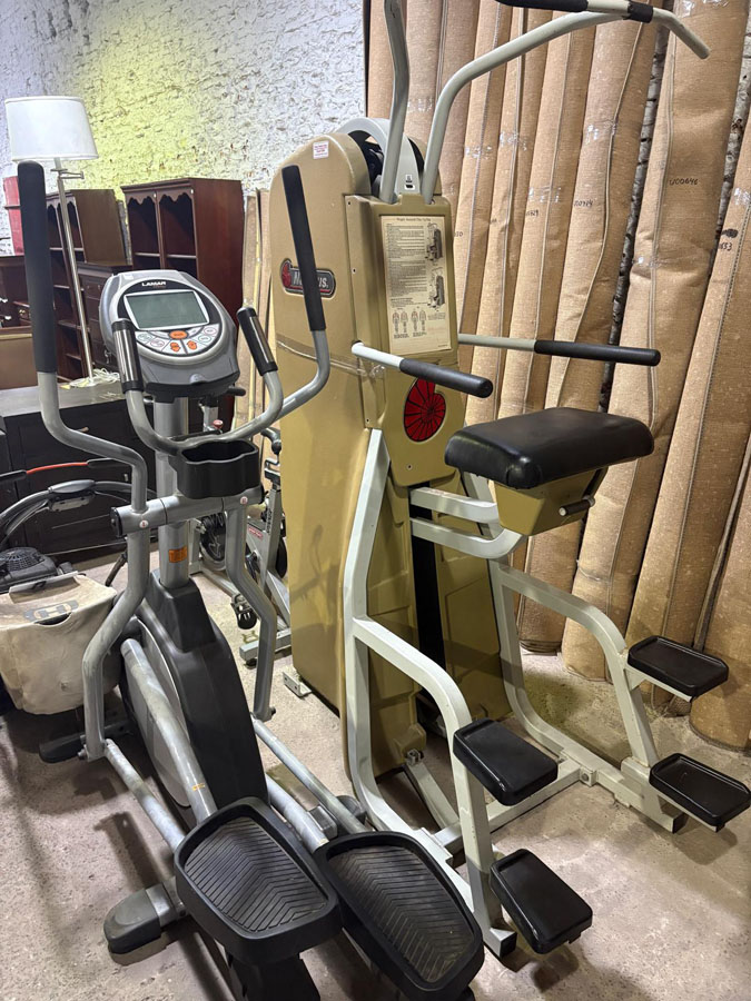 Aparatos para gimnasia y pesas. Torres, monitores, impresoras, transformadores. Ropa de cama, cortinas, artículos de cocina. Carros de carga, trailer, puertas blindadas, cables, ficheros metálicos de 2 cajones.