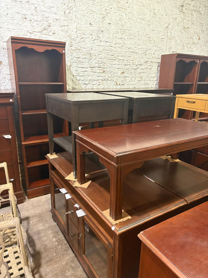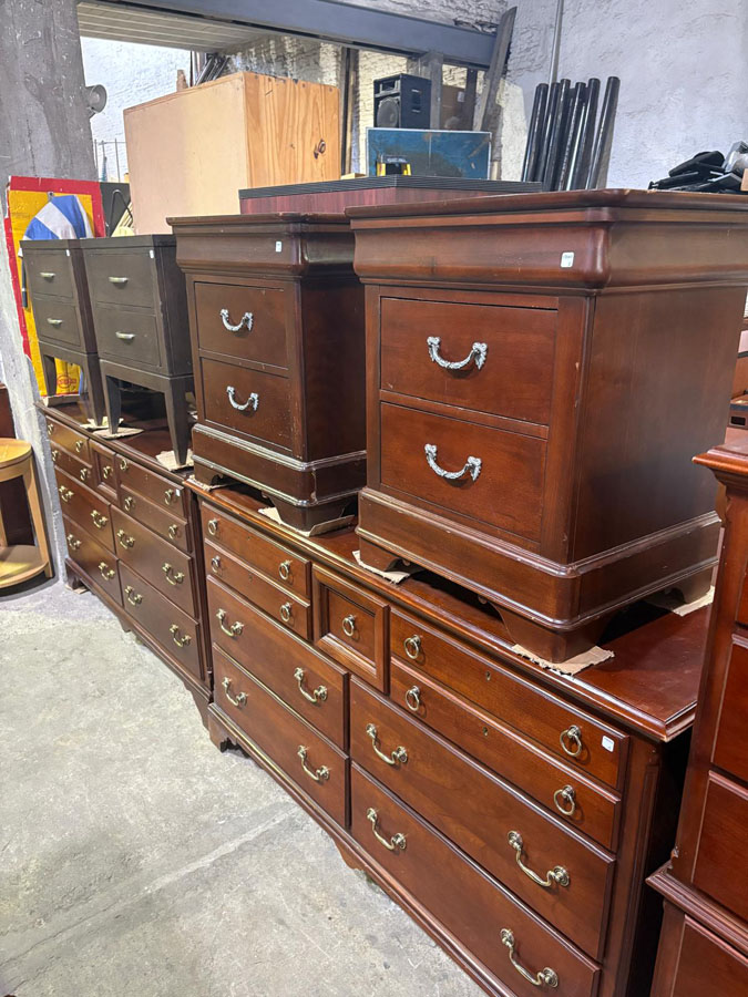 Cómodas, mesitas de luz, mesas ratonas, mesas y sillas de comedor, bibliotecas, lámparas, alfombras, colchones de 2 plazas, juegos de jardín, racks para TV, sofás de 2 y 3 cuerpos, roperos, escritorios, bancos de plaza, sombrillas.